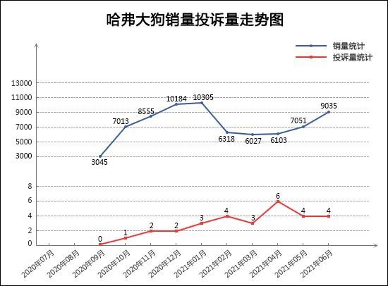 作为哈弗旗下的全新车型,哈弗大狗不仅在产品力方面表现出众,同时也凭借亲切的名字引领了一个新的车型命名潮流。从其近一年来的销量投诉量走势来看,在经历了上市后销量快速攀升后,哈弗大狗的销量走势进入盘整回升阶段,走势相对更为平稳。6月份,哈弗大狗的销量达到了近五个月来的最高点,为其下半年的销量表现开了个好头。值得肯定的是,在销量稳步走高的同时,哈弗大狗的月投诉量始终保持在个位数水平,短期内的质量口碑表现出色。整体来看,哈弗大狗已形成强劲的上升势能,未来销量将进一步走高,再次破万已为时不远。