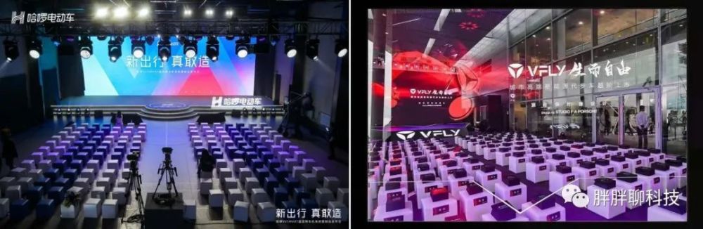 比如雅迪高端品牌VFLY发布前,其官方视频号发布的一条预热视频,通过谐音梗暗讽“不要哈喽”。同时在发布会现场布置、系统解读动画、机器人形象和产品概念包装等方面,也疑似与哈啰电动车的VVSMART超连网车机系统出现了“撞车”。