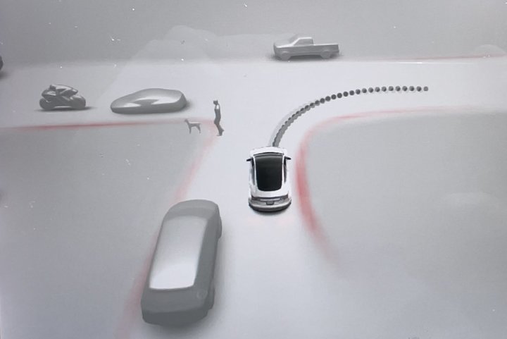 特斯拉表示,目前的「Mind of Car」能够更好地支持全自动驾驶功能。在驾驶员启动该功能时,液晶仪表将会准确地显示车辆周围的路况信息