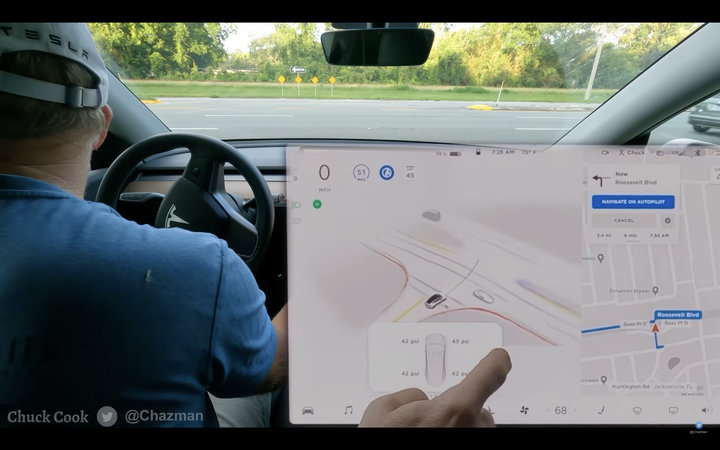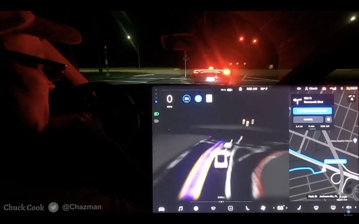 特别是特斯拉在尝试左转进入一条六车道的高速公路时,等待了非常长的时间,最后 Cook 进行了人为干预,手动将这辆特斯拉驶入了高速公路。
