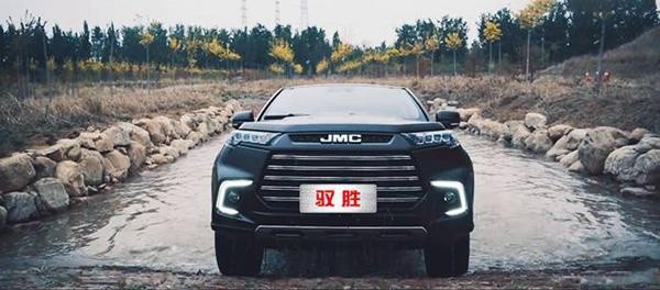 驭胜前脸采用了一个大面积的六边形进气格栅,入眼让人过目难忘。新款的车标采用的是“JMC”,与前LED大灯左右对称,一气呵成,霸气中多了几分运动气息。