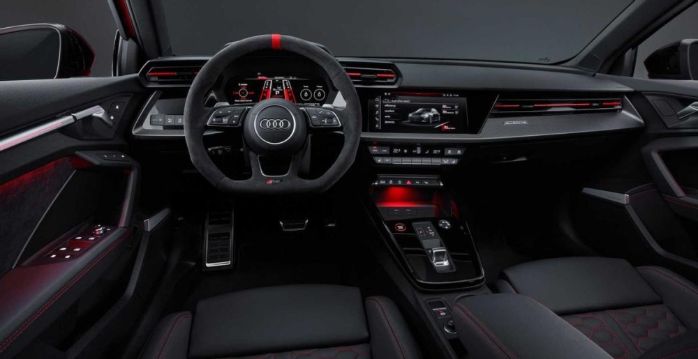 至于内饰方面,全新奥迪RS 3设计基于全新奥迪A3打造而来,只不过,在细节以及配置上进行了一定程度的调整,中控区域布局清晰规整,超大尺寸的液晶显示屏,加上中控区域的10.1英寸的触摸屏,一定程度上提升了几分应有的科技气息,新车还将提供RS运动座椅,大面积软性材质的包裹,以及细节之处的缝线处理,从而使其整体营造出了一种舒适豪华的内饰氛围。