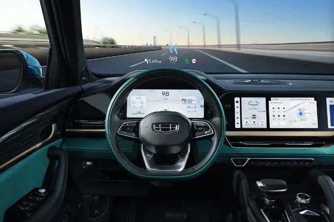 新车首发搭载吉利银河OS系统,采用最强车规级高通骁龙8155芯片,可实现IMAX三联屏及25.6英寸AR-HUD的四屏联动—打造了“屏占比”最大的智能座舱,副驾也能玩得溜。