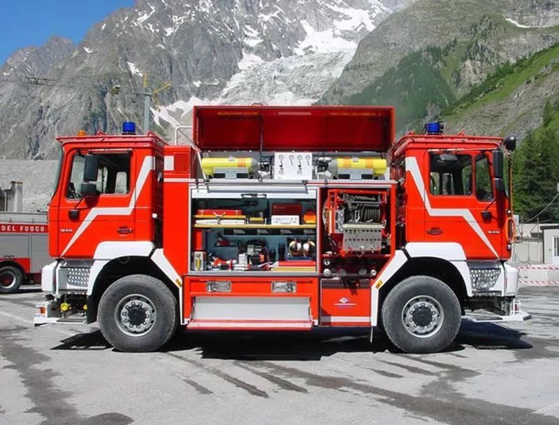 以上车型没有任何实用性,真的王者得看法国意大利的勃朗峰隧道消防车。1999年的勃朗峰隧道火灾造成38人死亡后,管理方引入这种双头消防车,在隧道里面不用掉头就能双向行走。