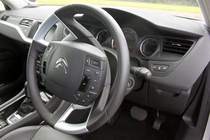法鸡设计欢乐多,雪铁龙C5的多功能方向盘,中间多功能模块是不会随着方向盘转动而转动的。