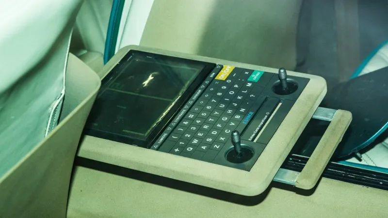 车内,方向盘被剥夺了,驾驶者可以通过摇杆来控制汽车。