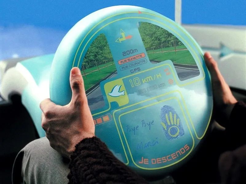 雪铁龙也做过这种蠢事,在2000年发布的Osmose概念车中,一个巨丑的全显示屏方向盘出现在我们眼前。整套宣传画的风格,跟中国10年前的三线城市房地产商劣质外包广告有得一比。