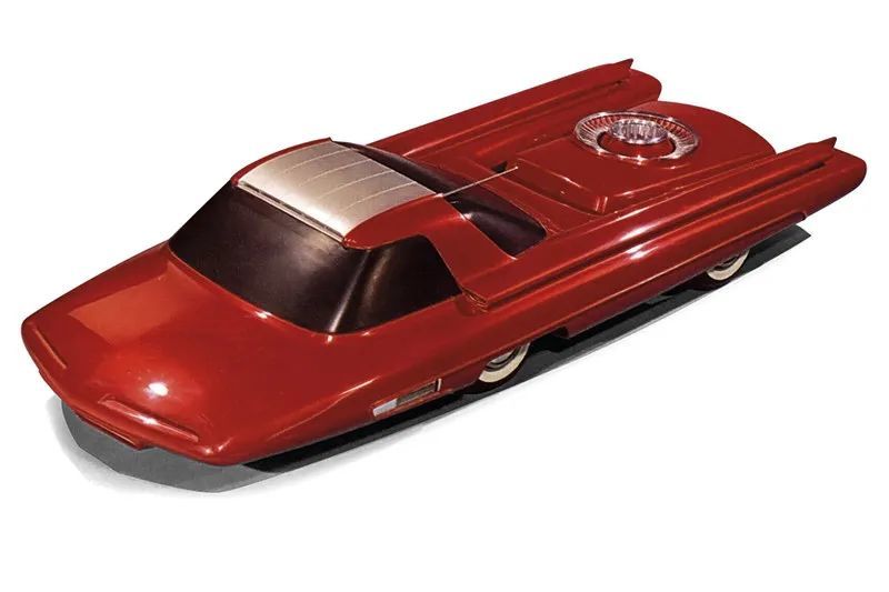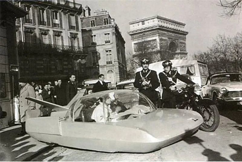 1959年日内瓦车展上,另一辆核动力汽车Simca Fulgur诞生,这家法国公司认为2000年的出行方式应该是这样的——采用核动力驱动,续航5000km,巡航状态可以收回车轮进行飞行。