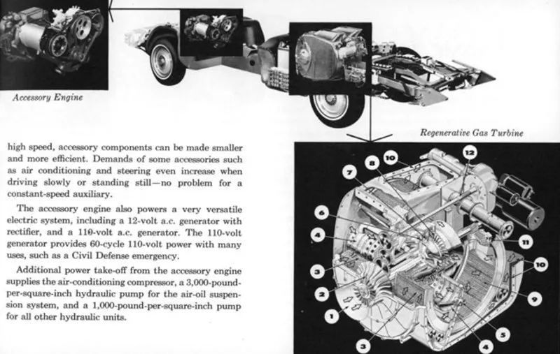 为什么这么快呢?不是美式V8厉害,而是它装备GT-305燃气轮机。火鸟3还有一台双缸的10马力小型汽油机,在巡航的低能耗状态下可以启动来供能。