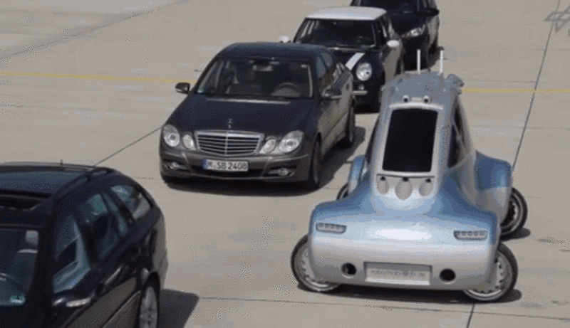 进入21世纪之后,脑洞大开的设计师弄出一款叫ROboMObil的全轮转向怪物,四个车轮用变态的90度转向来应付所有难停车位。