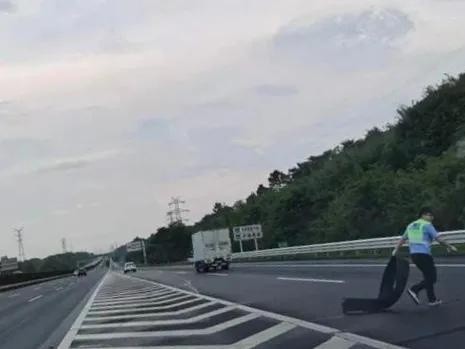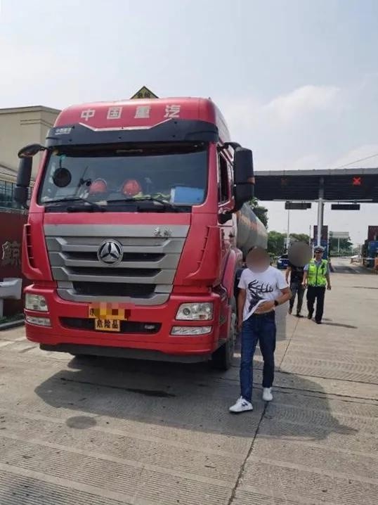 同样是在高速服务区,7月5日13时54分,高速四大队民警在对危化品车皖B***重型半挂牵引车装载硝酸进行安全检查时,也发现该车辆左后侧(前排外侧2只)严重老化,民警对驾驶员进行处罚并责令现场更换老旧车胎,同时将该安全隐患抄告车辆管理单位。