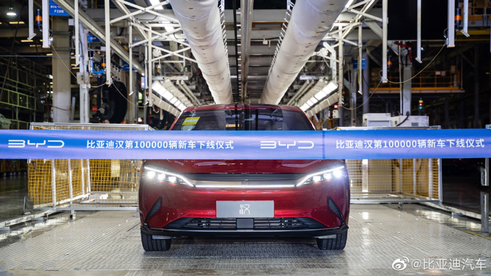 7月20日,比亚迪汉第10万辆新车在深圳坪山工厂正式下线。