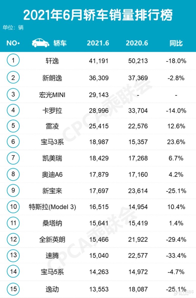 至于以往经常出现在销量榜单Top10的本田雅阁,6月份则以2507辆的成绩被大幅抛离,不过考虑到雅阁暂未出现严重质量问题,而且5月份的销量也达到1万2734辆的正常水平,目前的情况很有可能是全球芯片短缺的原因而减产导致。