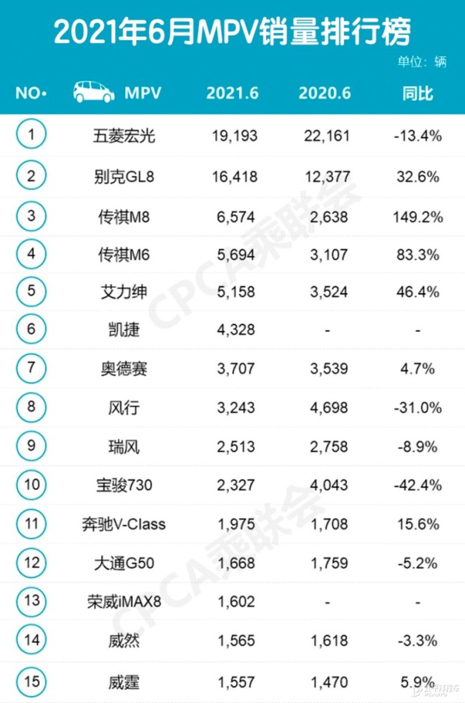 MPV市场方面,大家的地位都没有明显的变动,五菱宏光同比下跌13.4%,但仍以1万9193辆位列第一,而GL8作为豪华舒适取向的商务MPV,依然统治者这一领域的地位,以1万6418辆的成绩和32.6%的同比增幅排第二,而传祺的M8、M6尽管比起五菱宏光、GL8动辄超1.5万的销量仍有很大差距,但同比增幅149.2%和83.3%也交出了尚算满意的成绩单。