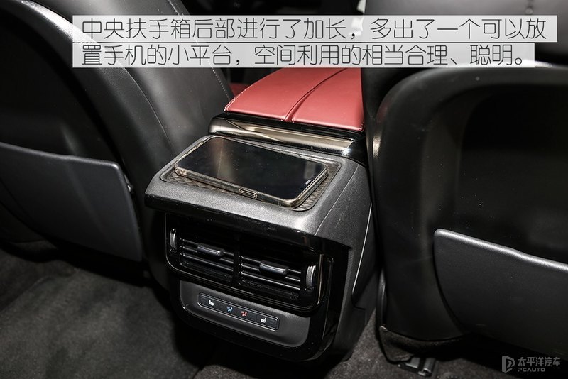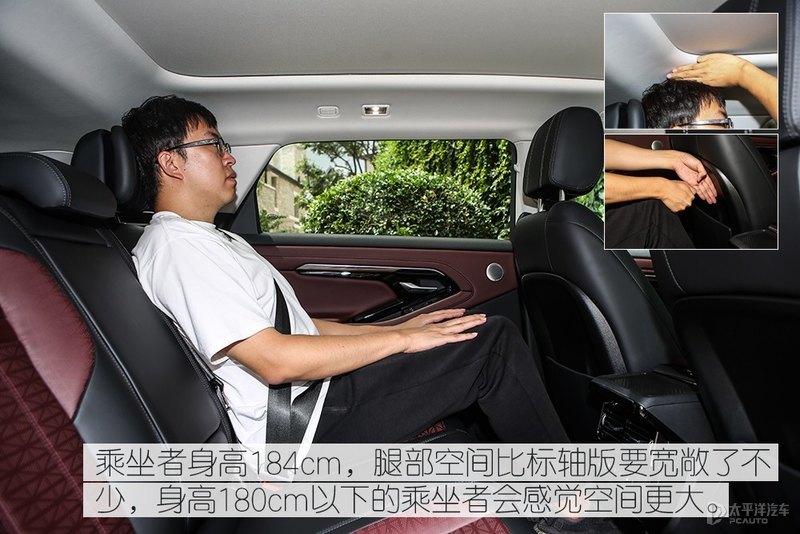 由于车内空空间得到加长,在中央扶手后部多安排了一个可以放置手机、钱包之类物品的触控平台,而且后排座椅的头枕换成了航空头枕,同时还增加有靠背电调节功能。另外,后排乘坐空间要比标轴好了不少,坐在后排不再是“委屈”的姿势,腿部空间得到了很好的改善,空间大了舒适度当然也就更棒了。