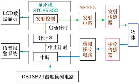 式中:C——超声波在空气中传播的速度(与温度相关);t——超声波发射接收的时间差(不仅与单片机选型有关,而且定时器精度越高,测量结果越精确)。