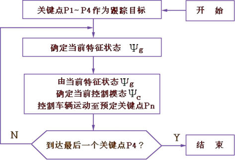该过程利用各种传感器传输来的数据信息,运用路径规划、行驶距离和行驶速度的融合算法,逐一控制车辆运动到达预定的关键点。可由图14表示出运作的过程,图15绘出了路径规划与模糊控制相结合的控制流程图。
