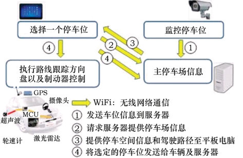 自主泊车系统由3个功能块组成:环境数据采集系统,包括图像采集和车载距离探测系统,将图像与车身和障碍物间距离的数据,由数据线传递至中央处理器;