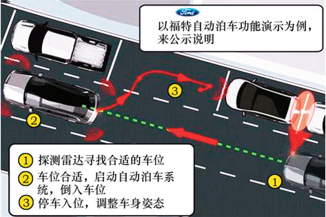 自主泊车系统需要应用到能支持自动驾驶、安装在车身各处的众多传感器,包括车载雷达(激光雷达系统)、视觉CCD摄像头和超声波传感器探头,还有全球定位系统。