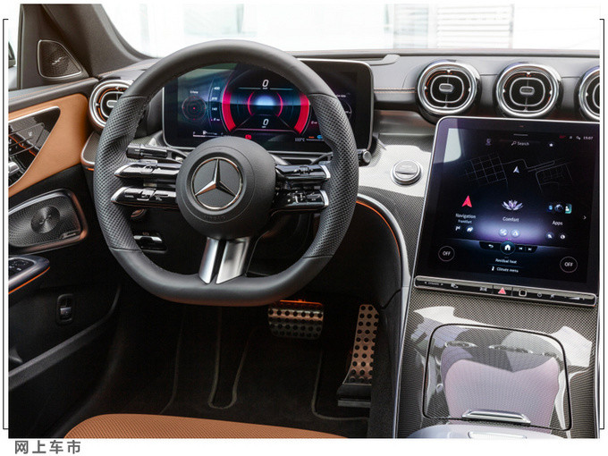 奔驰全新C级All-Terrain内饰或将与C级轿车车型保持一致,配备了全新三辐式多功能方向盘,并搭载悬浮式液晶仪表以及大尺寸斜面液晶中控屏幕,并提供了全新造型的空调出风口。