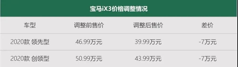 先是官降,和特斯拉一样,不是一个定价根本不同地方的经销商给出的优惠,而是1月27日,宝马官宣iX3降价,领先型从46.99万元调整到39.99万元,而创领型从50.99万元调整到43.99万元。这一降,就是降7万,远比其他竞品给出的优惠要多不少。