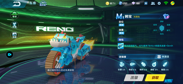鳄宝的特性实用性高,在激烈的竞速赛事中,每一个弯道都是一个反超的机会,可在任何赛道中灵活穿梭。