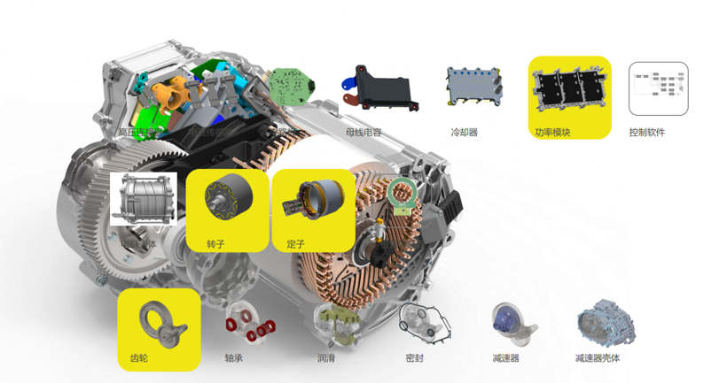 以纬湃科技EMR4为例,我们看到整个组合当中,除了有三大核心部件外,还涉及到功率模块、控制软件、散热和润滑等,也即是要实现“1+1+1>3”的功能。于此同时,在此复杂的系统基础上,要持续实现效能升级且成本降低更是难上加难。
