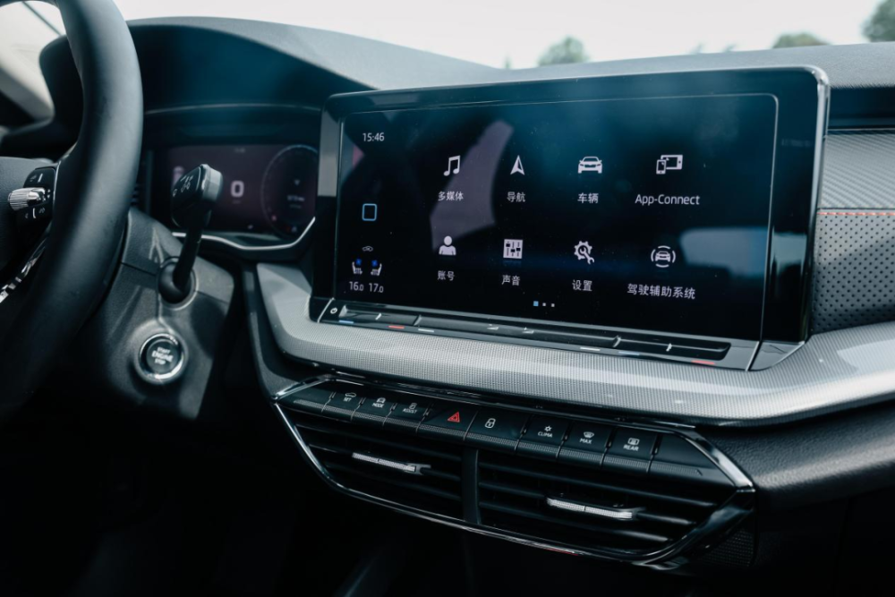 还有一个爽点,也可以算是提升逼格的点,是明锐PRO使用了奥迪A3同款的电子排挡,造型小巧、占用空间更小,在光线映照下,电子排挡会反射出莹光,质感精美。