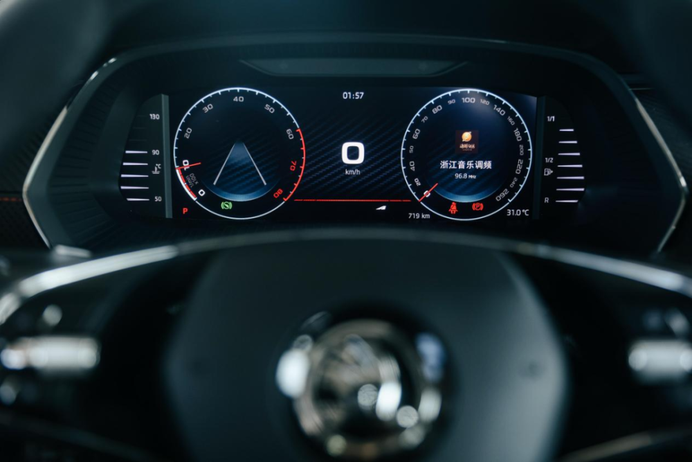最后说一下科技装备,明锐PRO的科技装备相较许多同级的合资车型还是能拉开一定距离。比如10.3寸的液晶仪表盘,清晰度足够,信息量也比较大,配合不同的表盘模式还能变化出多种显示组合。