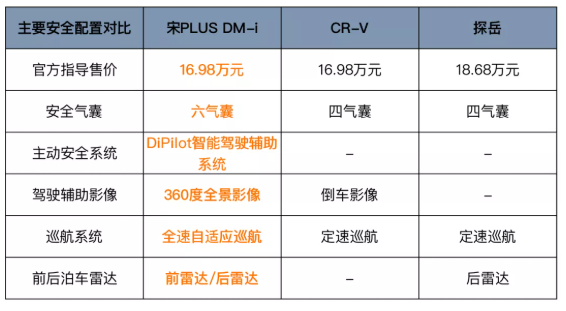 相比之下,同价位的CR-V,甚至是价格更高的探岳,在这些方面表现不够优秀。宋PLUS DM-i以更低的价格,送出更足的诚意,自然是明智之选。