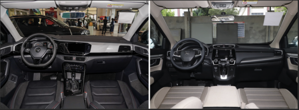 进入车内,我认为CR-V可以直接被PASS掉了,说实话我一直Get不到CR-V这个内饰设计的美感在哪儿,即便是在顶配版车型上,它的做工也用料也没有出彩之处。探岳倒是摸准了消费者的一些口味,用一些立体感的线条,勾勒出了一个年轻化的座舱氛围,只不过用料上仍然有较大的进步空间。