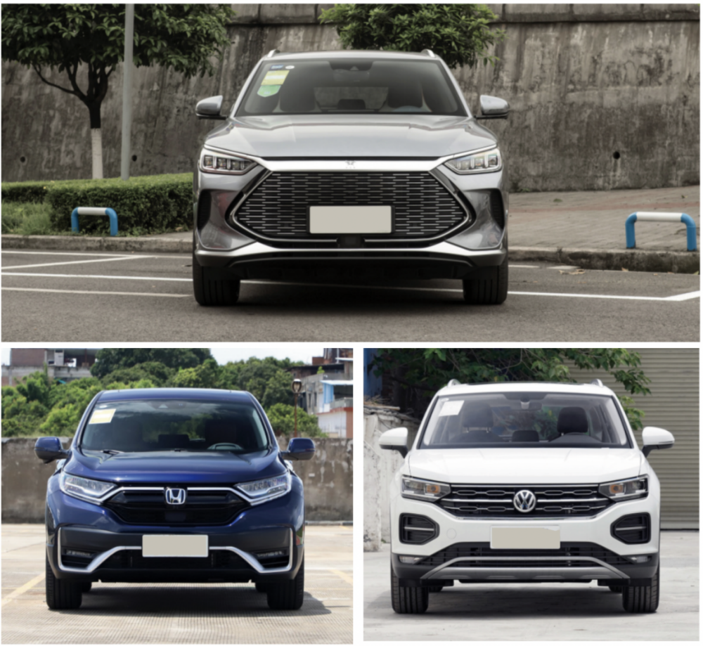 审美趣味是选车过程中主观影响因素,如果我们静下心来看宋PLUS DM-i、CR-V、探岳这三款车,后两款在视觉语言上比较传统,这种传统往往不会给用户带来惊艳的印象,同时也不会让人觉得厌烦;再来看宋PLUS DM-i,Dragon Face 3.0设计语言就比较大胆,大面积进气格栅看起来比较富有张力,流畅的线条、低趴宽体的姿态,让整车的运动感呼之欲出,更容易给人留下深刻印象。
