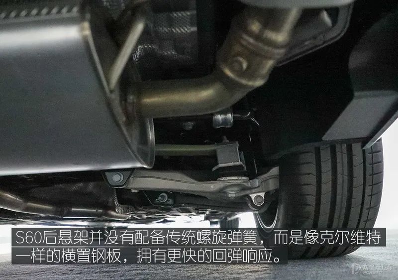 沃尔沃新款S60全系搭载铝合金双叉臂设计前悬挂,该设计可与扭矩转向形成补充,并且悬架的大部分部件都采用了铝材质以降低重量。后悬架则采用全新一代多连杆结构,用复合叶片弹簧替了代传统螺旋弹簧。该设计减少了悬架部件的重量,可降低车身重量以确保掌控度和舒适度。