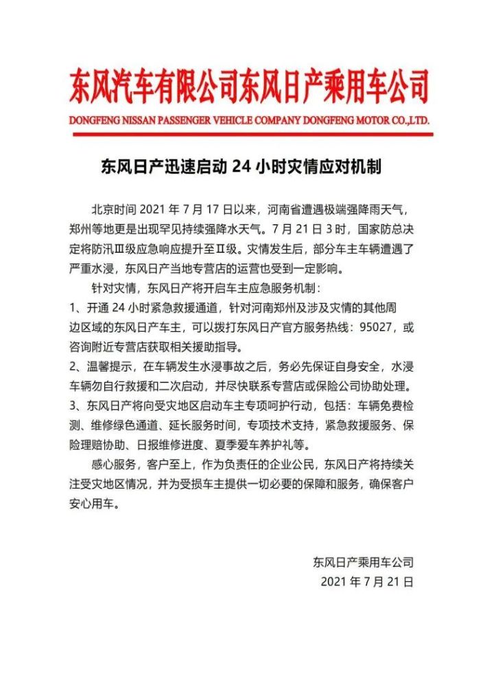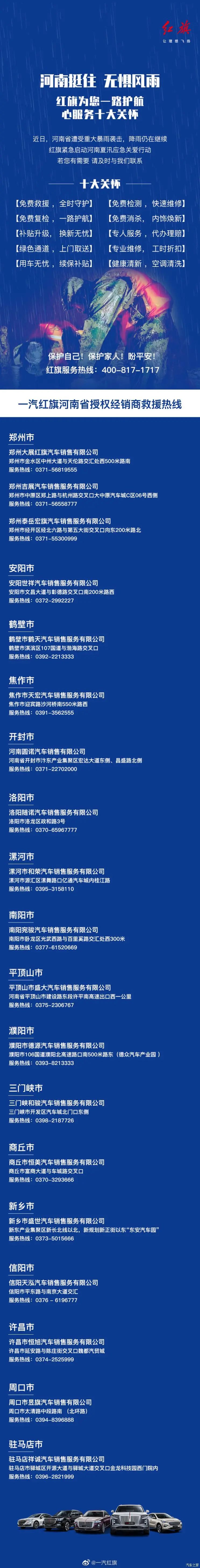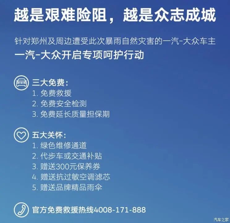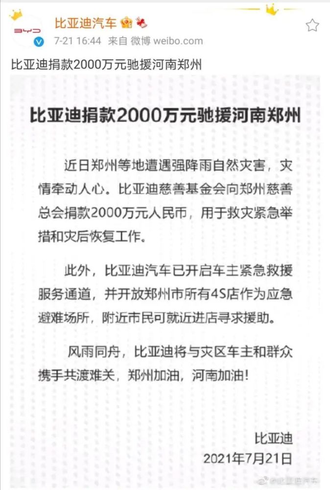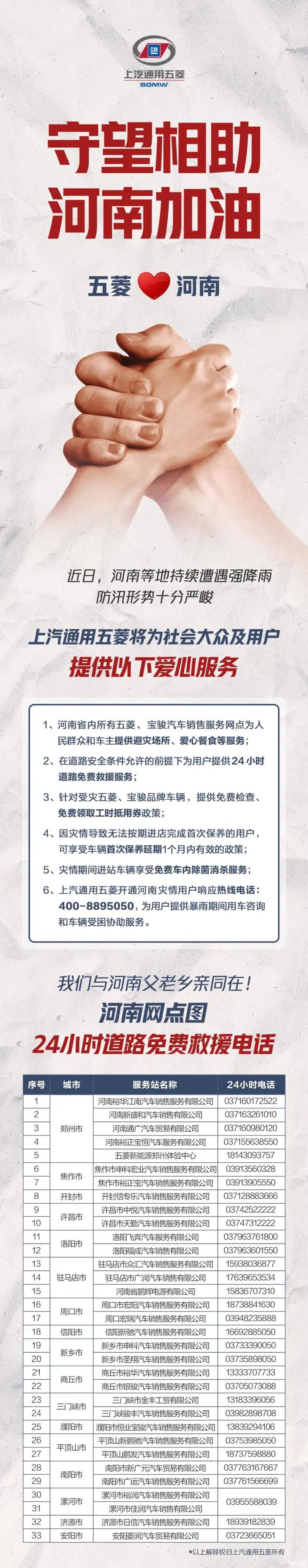 在河南省暴雨灾害发生后,大批车企主动响应,积极捐款捐物,并对河南省车主推出了救援服务/关怀计划。