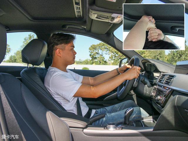 体验者身高178cm,坐进3系标轴版车型前排并将座椅调节至最低后,头部空间同样还剩两拳。