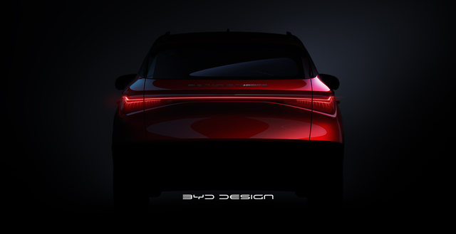 车身尺寸方面:元PLUS的长宽高分别为4455/1875/1615mm,轴距为2720mm,参数上要比元EV和元Pro更长更宽,轴距也更大一些。从侧面看,新车使用红/黑双色车身设计尾部方面,新车依旧采用了贯穿式尾灯,内部为羽状灯腔设计。