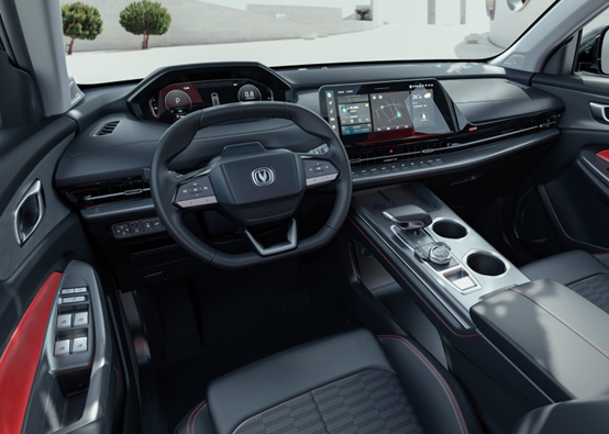 内饰采用全新风格的设计,简洁的中控被大量的软件性材质所覆盖,在档次感方面做的比较到位。仪表盘与中控屏尺寸同为10.25英寸,在显示效果方面与CS55 PLUS相差不多,界面也同样较为简洁,上手难度不大。功能方面也比较丰富,如导航、音乐、蓝牙电话、语音识别及车联网功能都予以配备。540°的上帝之眼环视影像非常实用,只是变形稍大一些,在距离判断方面会受到一定影响。