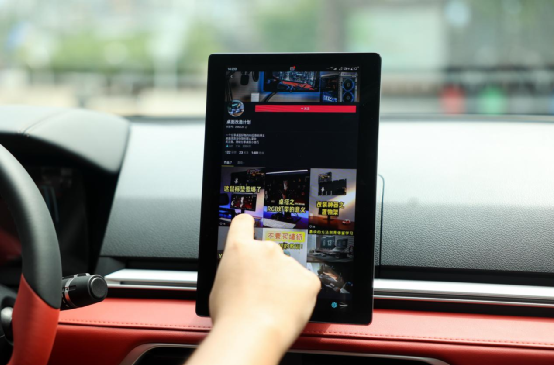 那这台比亚迪e2上面我最喜欢的,当属这块10.1英寸可旋转的中控屏幕,这款屏幕内置了DiLink智能网联生态系统,简单来说就是一台完完全全的安卓平板,像刷抖音、玩吃鸡、玩王者这些在e2上面就是“基操”。
