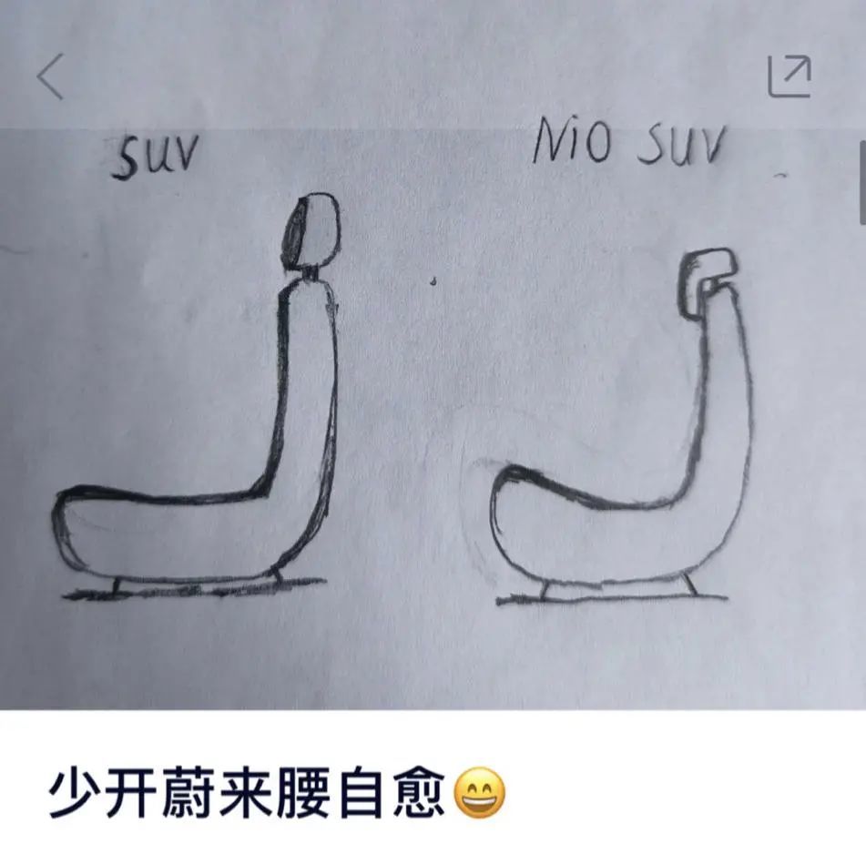 但是,蔚来官方打死也不承认这是设计缺陷。他们说,这是用户有“舒适性体验改善需求”。同时蔚来强调:长期目标,要做中国座椅最舒服的车企。
