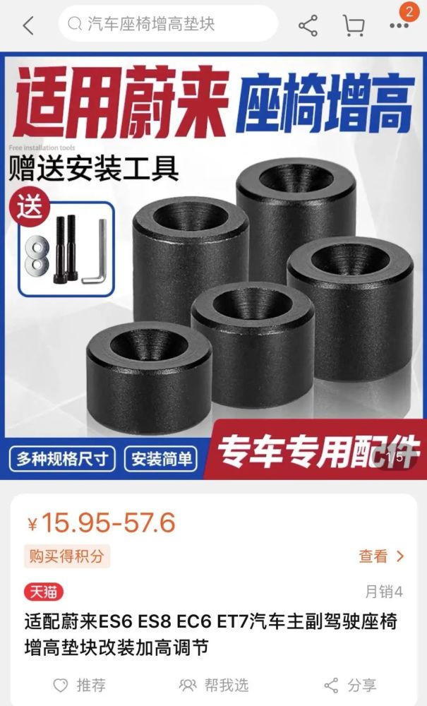 哪里有需求,哪里就有市场。在淘宝上,竟然有商家开卖座椅增高垫,山寨味浓厚的封面图上,特意大红字提醒:“适用蔚来”、“专车专用配件”。