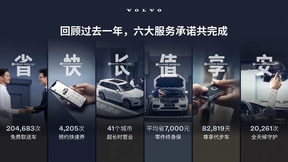 其中,免费取送车服务已经100%覆盖全国沃尔沃经销商。而“零件终身保”,更是国内豪华汽车品牌中推出这一服务的第一家。