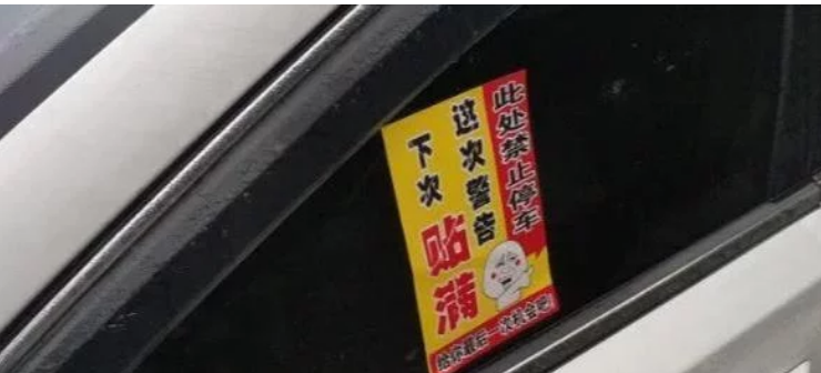 我们可以看到图中惩治乱停车仅仅只使用了一张纸,不过可不要小瞧这张纸,出来表面的警告语之外,背后也是大有玄机,这种纸的背后是用一种特殊胶水制作的,粘性非常的强,类似于我们经常能够看到的粘鼠板,不知道大家有没有被粘鼠板的胶水粘过,反正小编被粘过一次,五六年了还没有忘记当时有多绝望,根本就擦不掉,等了快一个星期才自然消失的,而这种贴纸也是用的这种材质胶水。