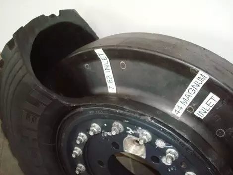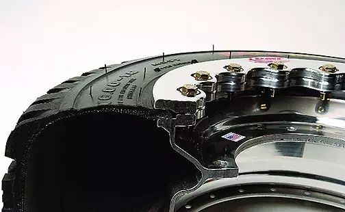 第二种危险因素是,轮胎是由螺栓压紧压边环的形式来装胎的,在高速行驶时会有一定的概率使螺栓松动从而轮胎就会漏气发生危险,这种扁平比大的轮胎一旦漏气对于行车安全来说也是一种非常大的隐患。