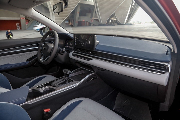 内饰方面相比老款车型也更有品质了,如果把方向盘的车标遮挡之后我相信有很多消费者都不会值得这是吉利帝豪的内饰设计,贯穿式空调出风口的设计也为车内带来了不错的层次感与纵向宽度,而且在用料方面相比老款车型也有所提升除了大面积软性材质包裹细节上还加入了银色镀铬件和黑色钢琴烤漆进行点缀。