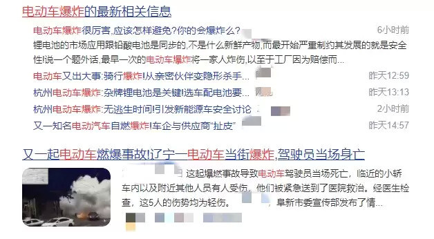 检索新闻,可以发现电动车爆炸并不是偶然事件。