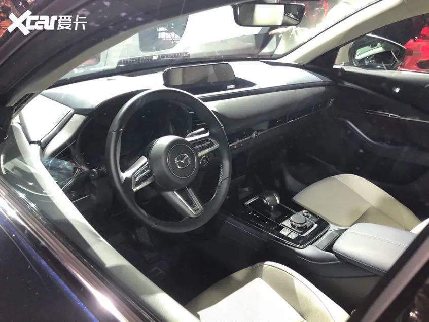 内饰方面,新车布局延续了马自达的家族式设计,三辐式方向盘与燃油版本保持一致,仪表盘和中控显示屏采用了全新的设计。