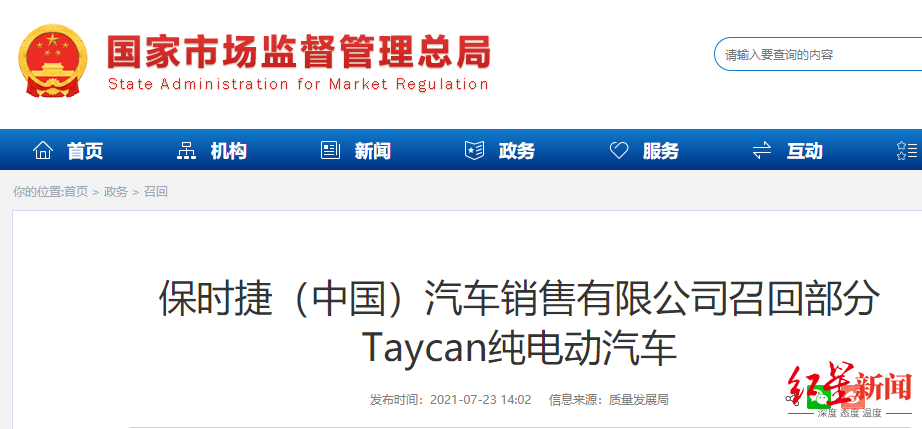 召回部分进口Cayenne汽车、Taycan纯电动汽车