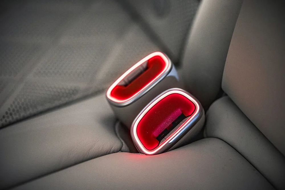 说低调也不完全准确,车内有些地方是能够点亮的,那就是氛围灯照明,前提是你要把它设置得色彩斑斓。在暖色调的白色中,它给内饰增添了优雅高贵的光泽。窗线下方的灯带不仅能上演灯光秀,而且能用闪烁的红光提示你盲区中有障碍物。