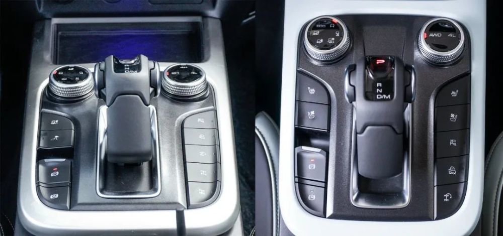 在内饰设计上,城市版车型与越野版最大的差异在挡把区域,城市版车型取消了前后差速锁,并且将原本设计在中控屏内的前排座椅加热、通风功能变成了实体按键,使用更加便利。此外,城市版的四驱旋钮也仅提供AWD(自动)和4L(低速四驱)两种模式,不再是越野版的2H(后驱)、4H(高速四驱)和4L(低速四驱)。