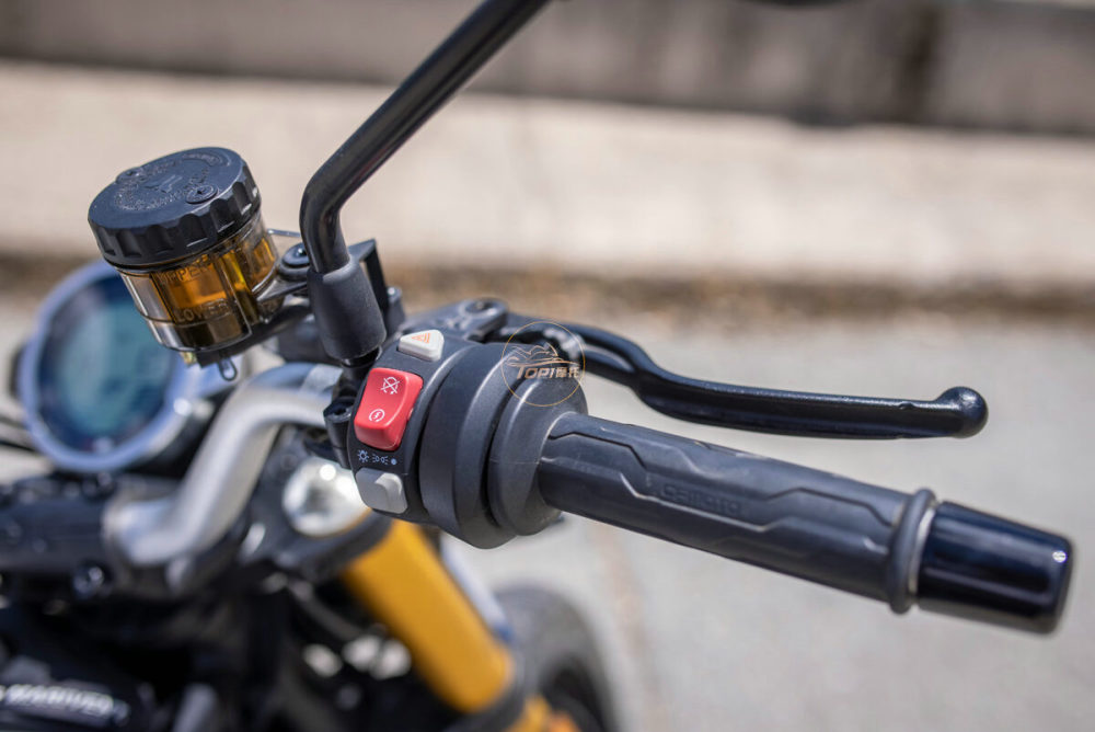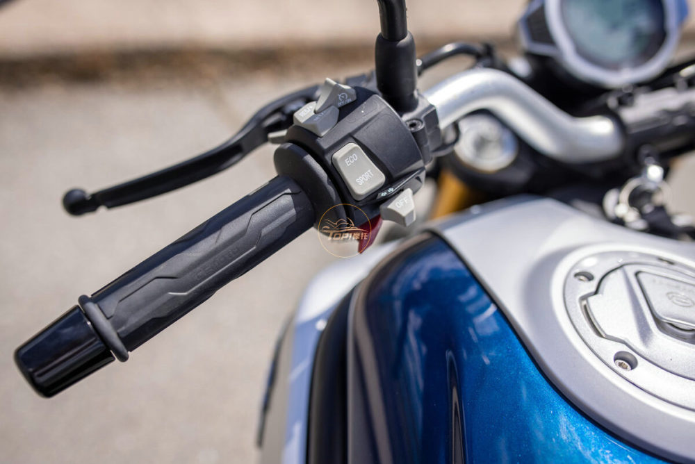全新设计的手把按键质感出色,有点类似欧洲车的风格,左侧手把,两种驾驶模式选择键和定速巡航功能按键历历在目,还标配了滑动离合器。